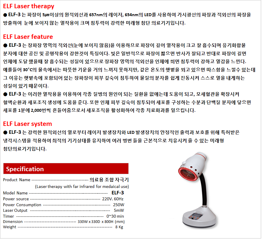 ELF-3 는 요즘 시대에 맞추어 새롭게 개발된 레이저의료기기입니다.
